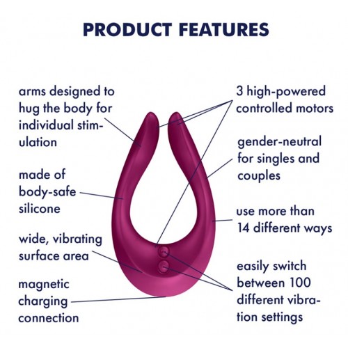 Satisfyer Endless Joy можно смело назвать универсальным вибратором. Он подходит не только для парного использования, но и для соло-игр, имеет гладкую приятную текстуру, интуитивно понятное управление.