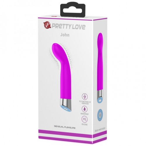 Вибромассажер для точки G Pretty Love John оснащен 12 различными режимами вибрации, которые с легкостью переключаются с помощью кнопочки в основании изделия.
