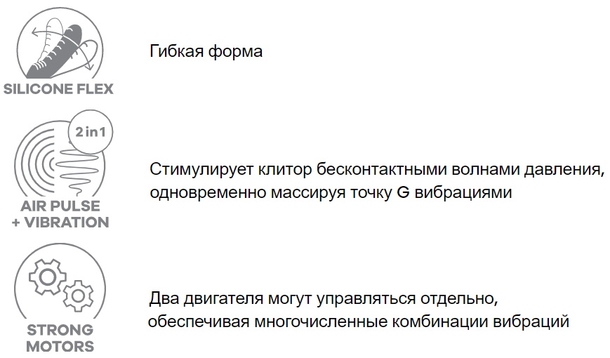 Этот индивидуально регулируемый вибратор заставит вас увидеть звезды благодаря сочетанию волн давления и стимуляции точки G. Благодаря технологии silicone Flex и цепному соединению внутренний гибкий вал можно регулировать до 45 градусов и, таким образом, он идеально подойдет для любого типа тела.