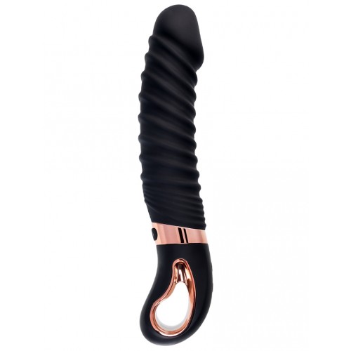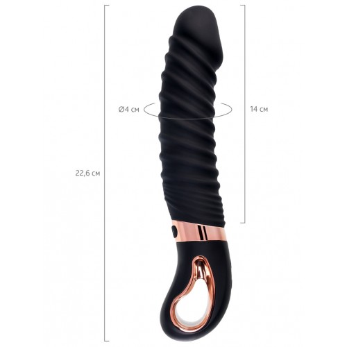 Казалось бы, идеальнее быть не может. Но нет – закрученный спиралью рельеф придает особую выразительность стимуляции эрогенных точек, гнущийся ствол умело манипулирует скоростью возбуждения, а удобная ручка-держатель помогает легко подстроить игрушку под ваши анатомические особенности и желания.