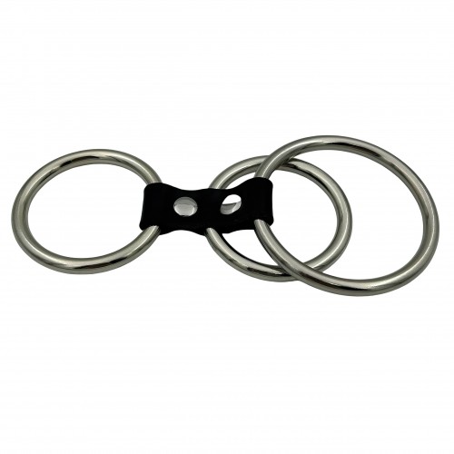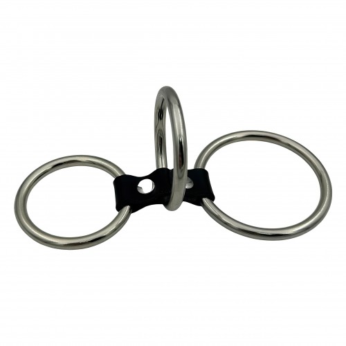 Кольца скреплены ремешком из искусственной кожи с металлическими клепками.