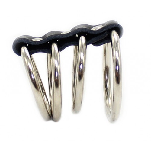 Четыре эрекционных кольца из стали на кожаном ремешке