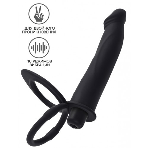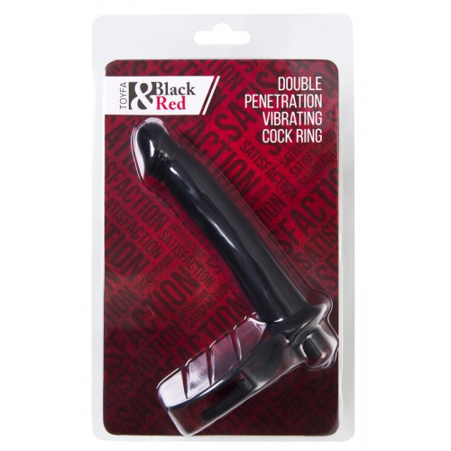 Черная вибронасадка на пенис для двойного проникновения BlackRed by Toyfa 19 см