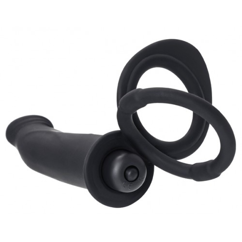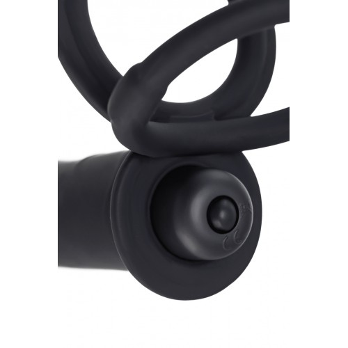 Насадка надежно фиксируется на теле двумя кольцами, которые плотно обхватывают ствол пениса и мошонку.