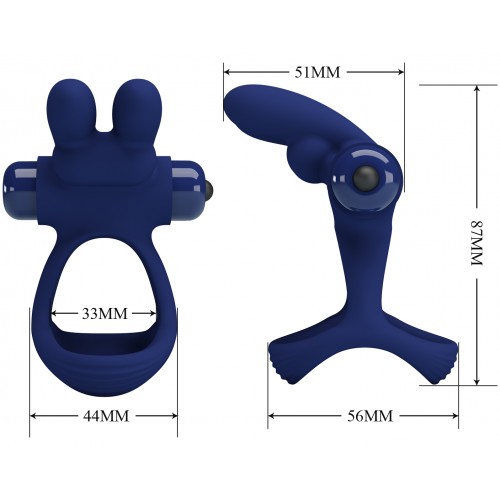 Игрушка представляет собой эрекционное силиконовое кольцо с клиторальным стимулятором в виде зайчика с петлей на мошонку. Кольцо надежно фиксируется на пенисе и яичках, помогая поддерживать более твердую эрекцию и усиливая оргазмы.