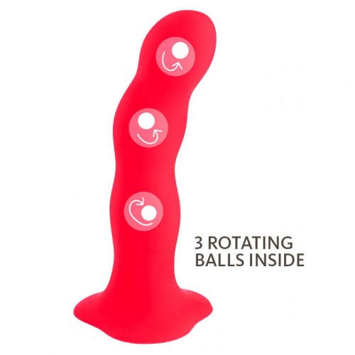 В его оригинальной форме кроется мощная волна оргазмов. Утолщения на стволе – заслуга встроенных внутрь шариков, которые издают приятную дрожь. Несмотря на то, что игрушка не дополнена функцией вибро, она все равно подарит необычные ощущения. Шарики то резко вздрагивают, то нежно касаются стенок влагалища. Даже если вы не двигаете дилдо, он все равно будет дарить равномерную вибрацию.