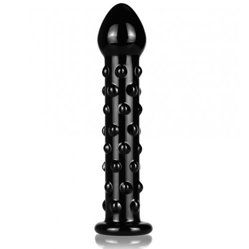 Черный фаллоимитатор из стекла Glass Romance с пупырышками 17 см