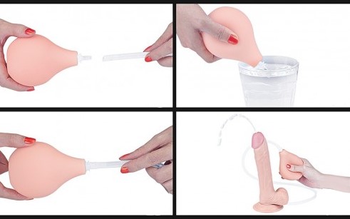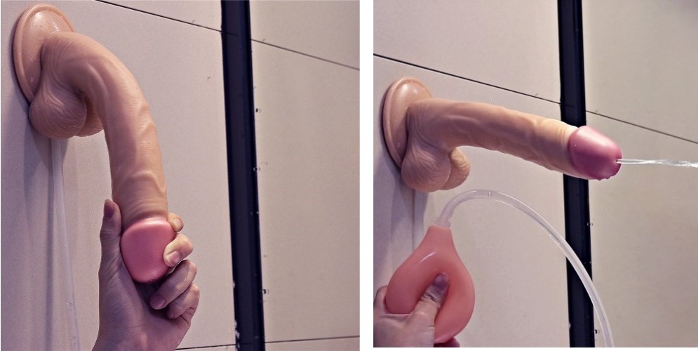 Просто наслаждайтесь ей, как и обычным фаллоимитатором, а в момент Вашей кульминации сожмите грушу, наполнив её предварительно водой либо смазкой на водной основе, и игрушка кончит с Вами одновременно!