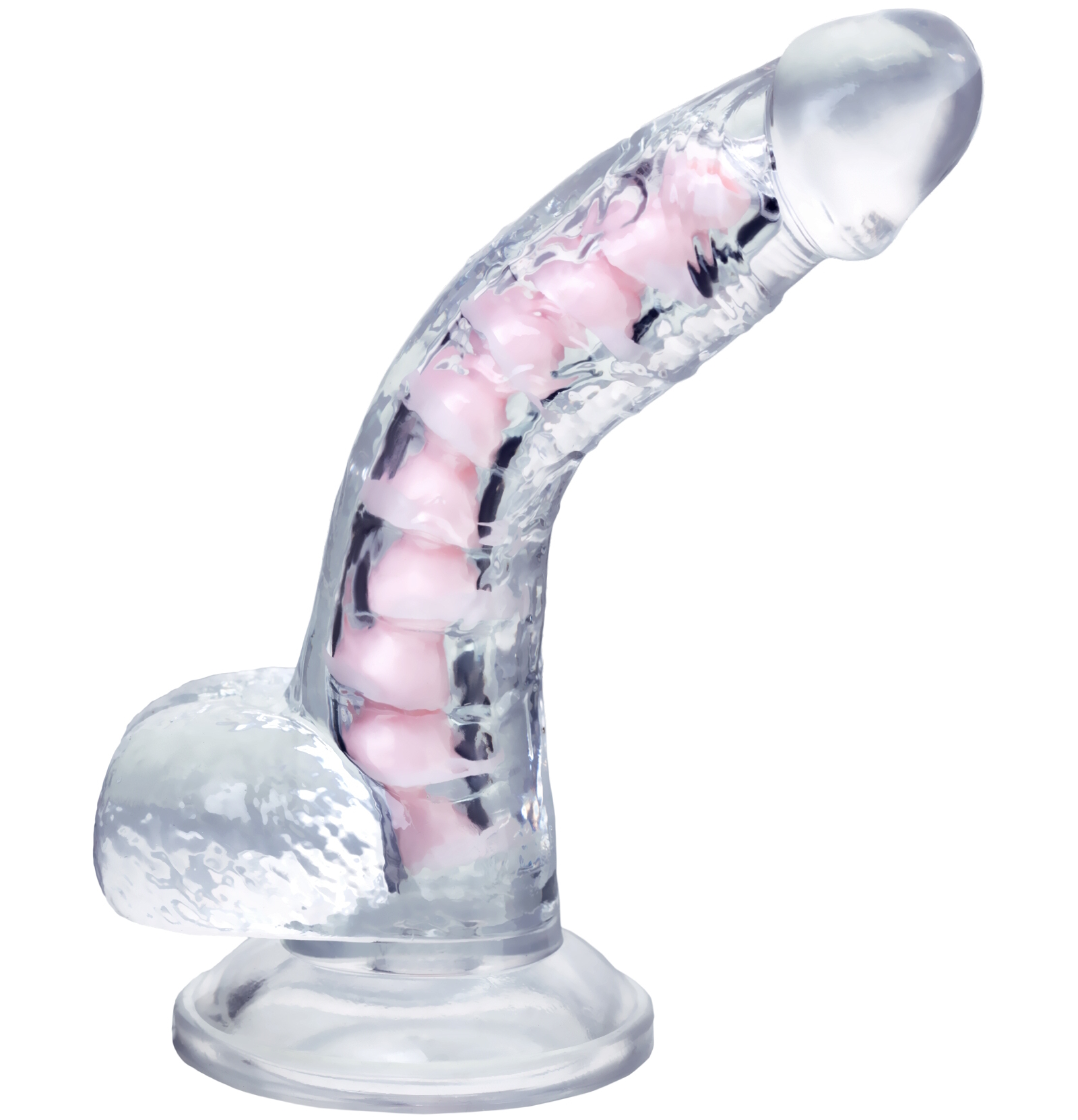 Особенность секс-игрушки – наличие гибкой фиксирующейся внутренней конструкции, которая, благодаря материалу исполнения, отлично просматривается.