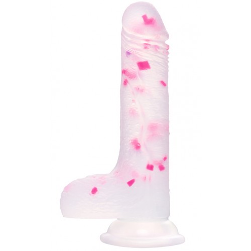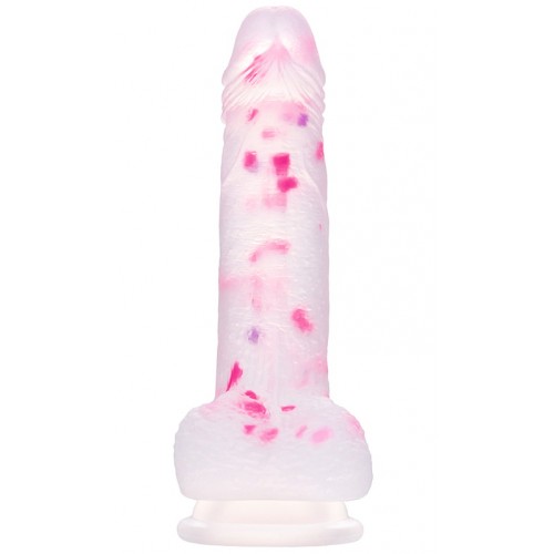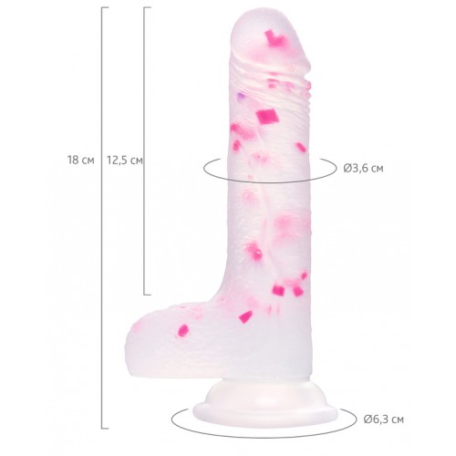 Необычный дизайн в виде прозрачного силикона с цветными вкраплениями идеально подходит для тех, кто не готов к супер-реалистичным игрушкам и хочет разнообразить сексуальную жизнь.