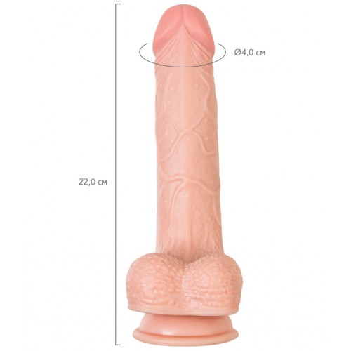 С длиной в 22 см и диаметром 4 см, фаллос предлагает ощутить всю полноту чувств – его размер подходит большинству женщин.