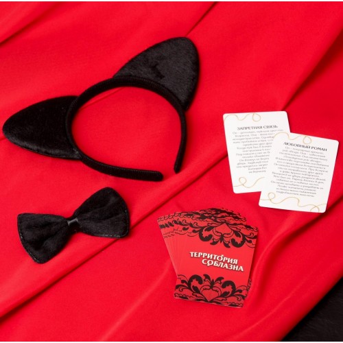 Эротический набор Территория соблазна: Женщина-кошка - ободок, галстук-бабочка, 10 карт