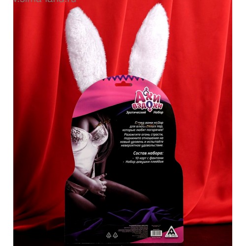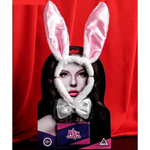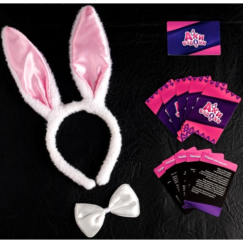 Эротический набор Ахи-Вздохи: Девушка-плейбой - ободок с ушками, галстук-бабочка, 10 карт