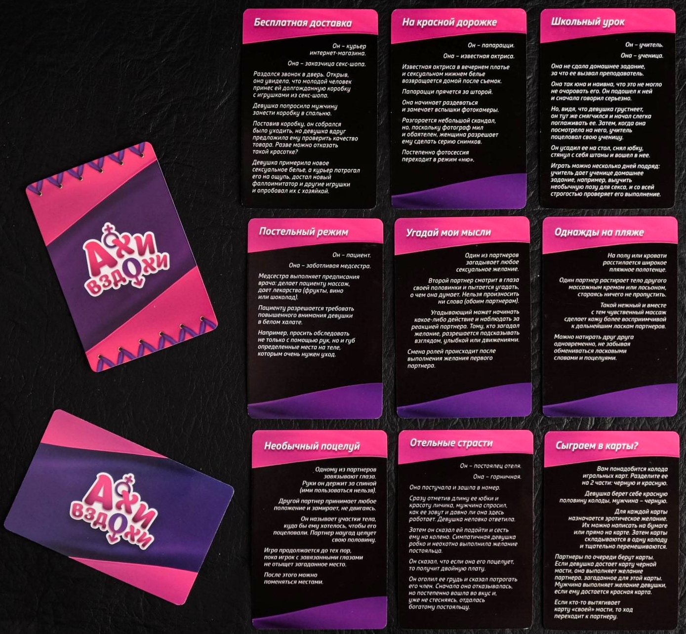 Внутри вас ждёт 10 карточек с фантами, а именно — с вариантами ролевых игр.