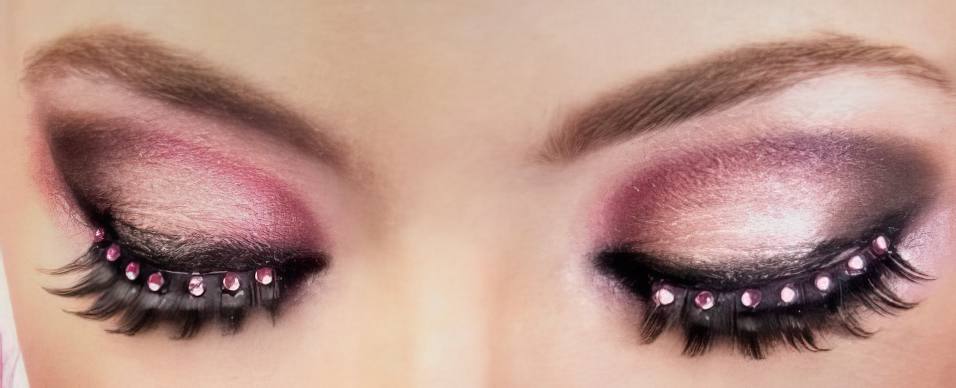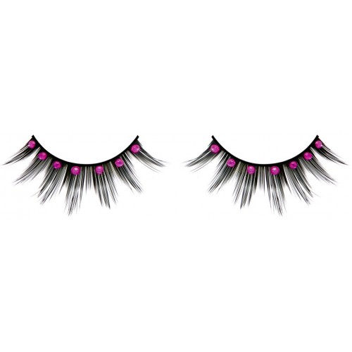Чёрные ресницы с ярко-розовыми стразами Baci