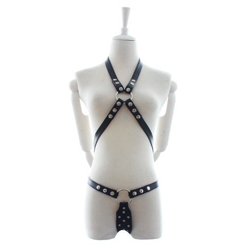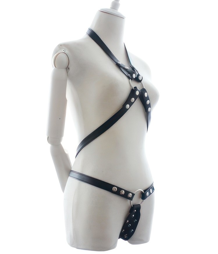 Кожаная сбруя по форме напоминает удобное сексуальное боди.