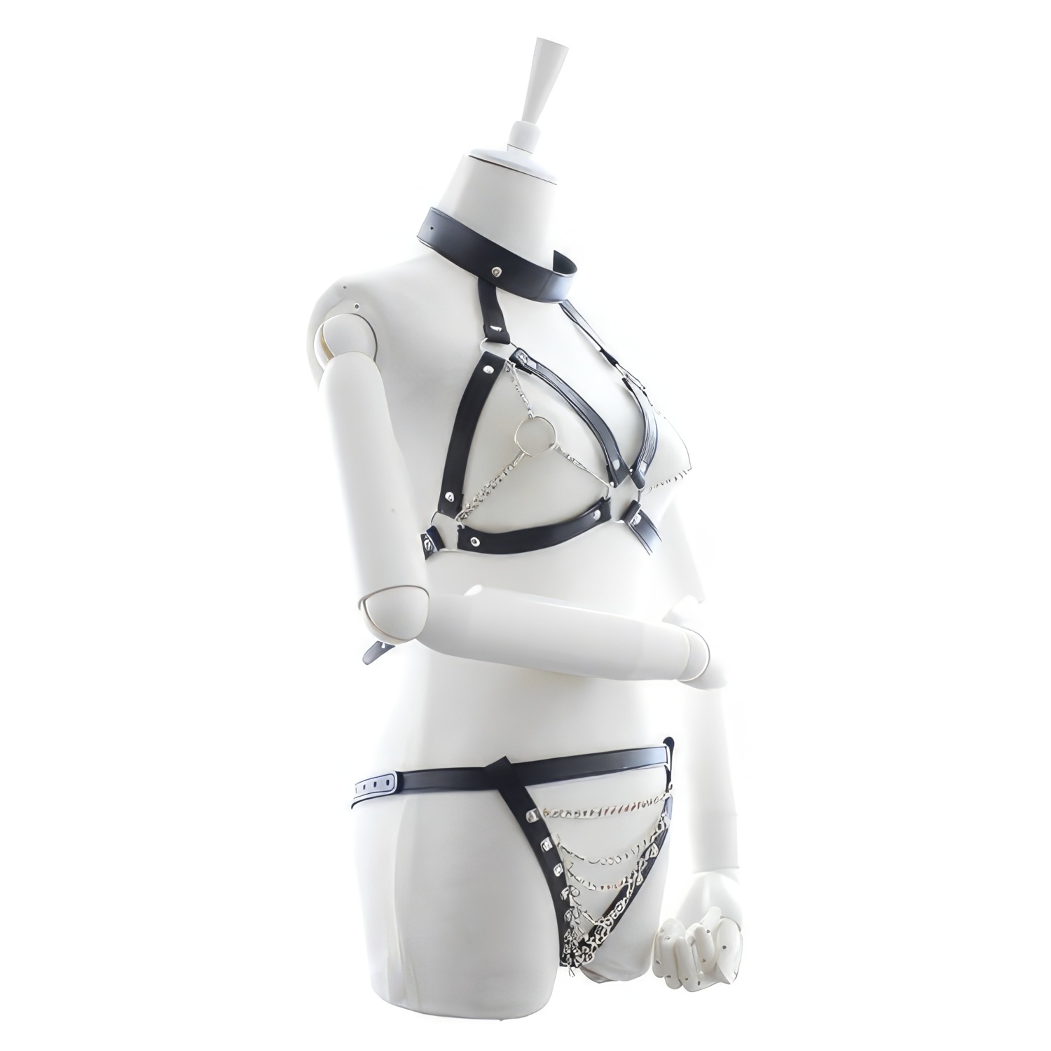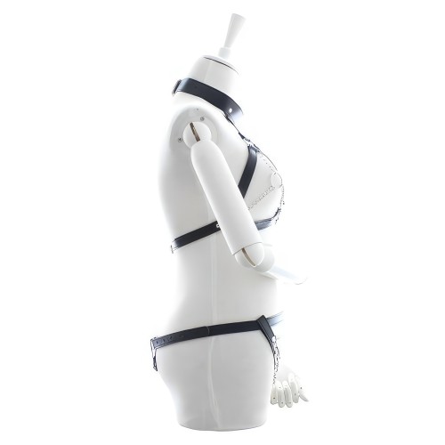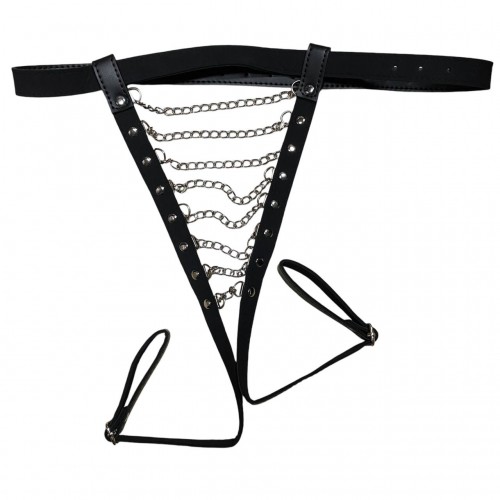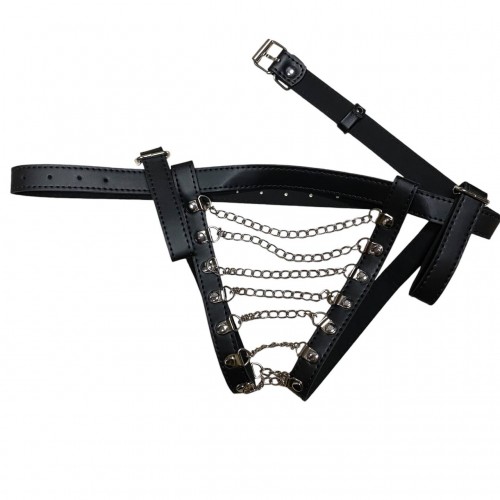 Трусики также не скроют самого интимного места, а лишь раздразнят воображение, соблазнительно сверкая на свету тонкими цепочками. Такой костюм подчеркнет Ваш дерзкий образ во время игр с элементами БДСМ и намекнет, что Вы всегда получаете желаемое.