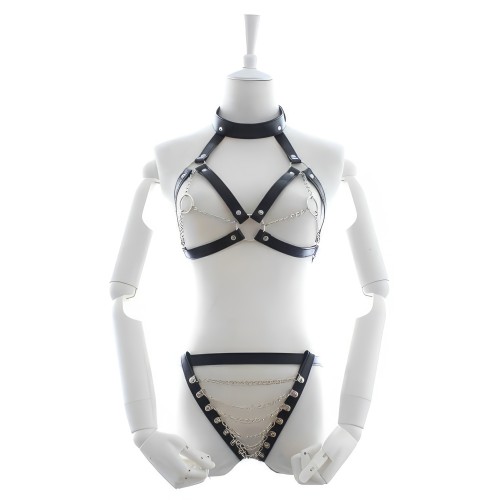 Сексуальный комплект белья состоит из лифа и трусиков, украшенных металлическими цепочками. Партнер сможет любоваться Вами, ведь открытый лиф продемонстрирует грудь и подчеркнет красоту ее формы.