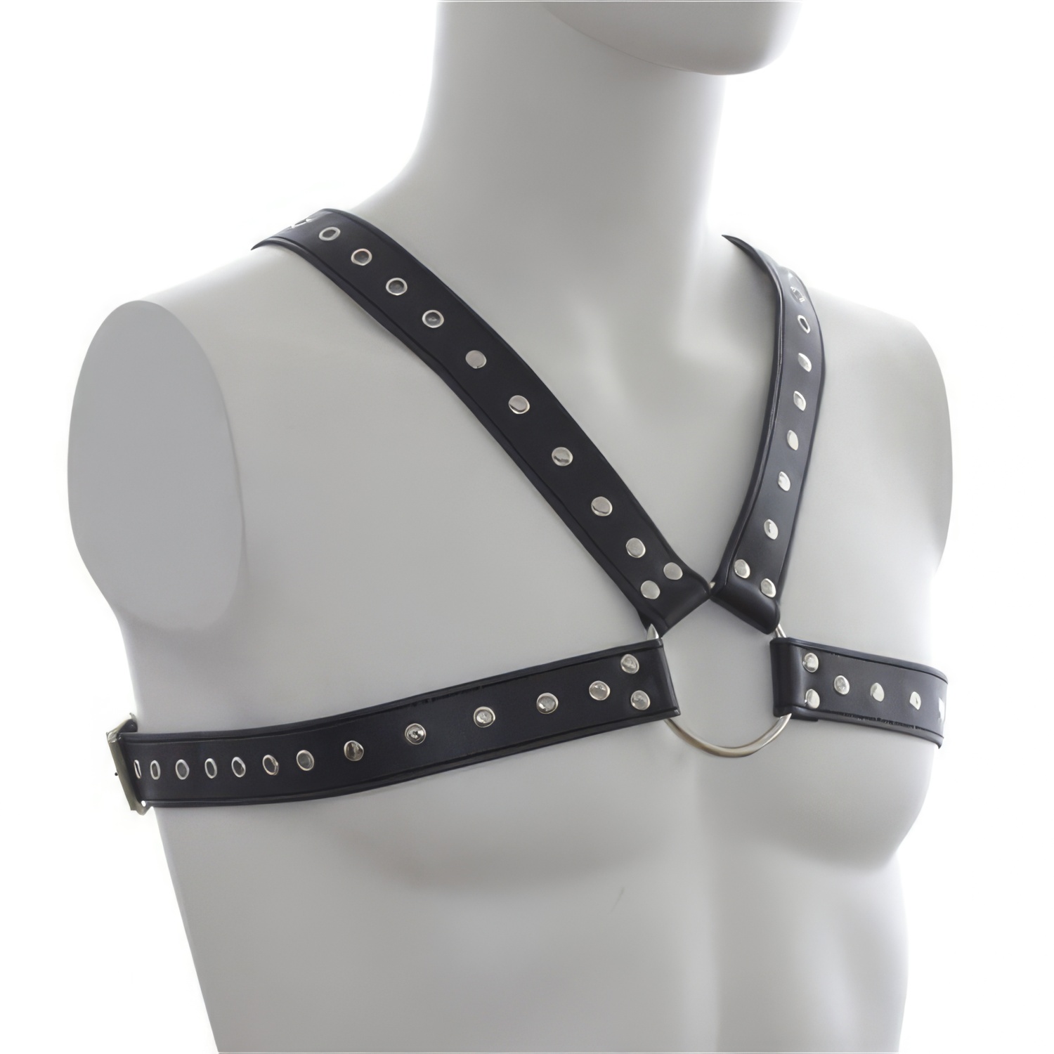 Черная мужская сбруя подчеркнет плечи и грудь мужчины!