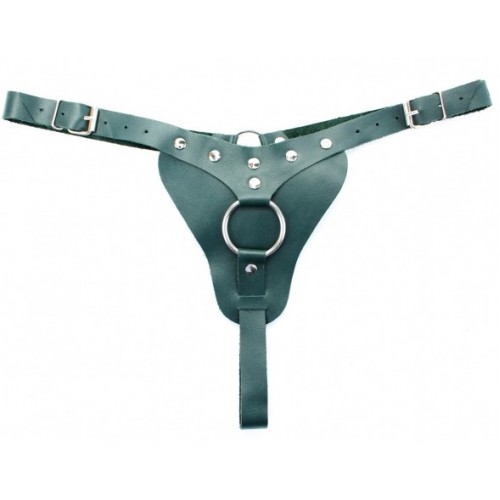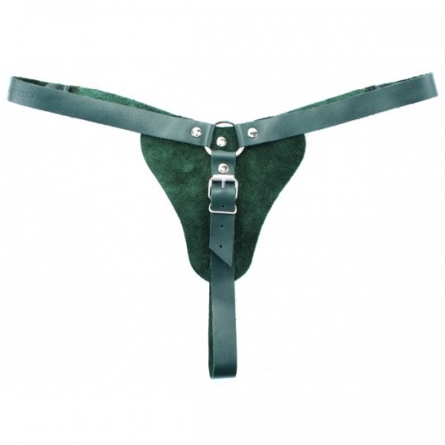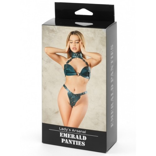 Трусики выполнены из натуральной кожи потрясающего изумрудного цвета.