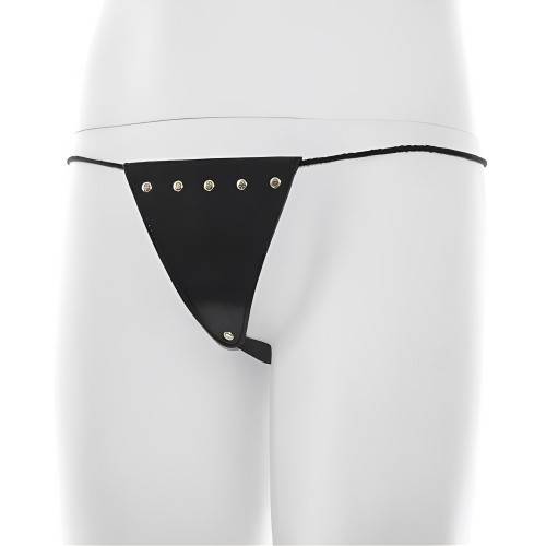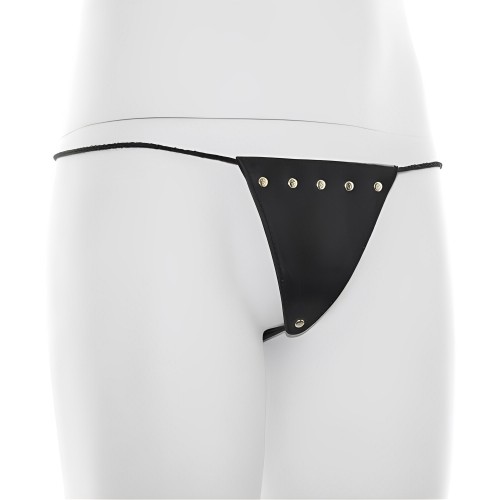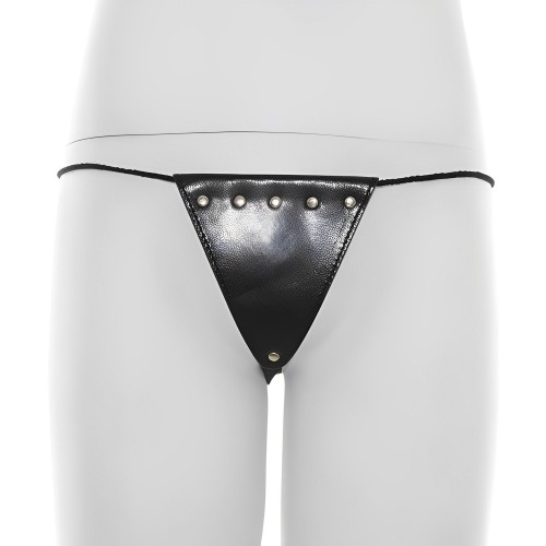 Выполненные из искусственной кожи трусики-стринг подчеркнут округлость Вашей попки.