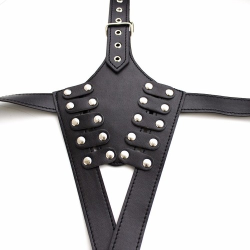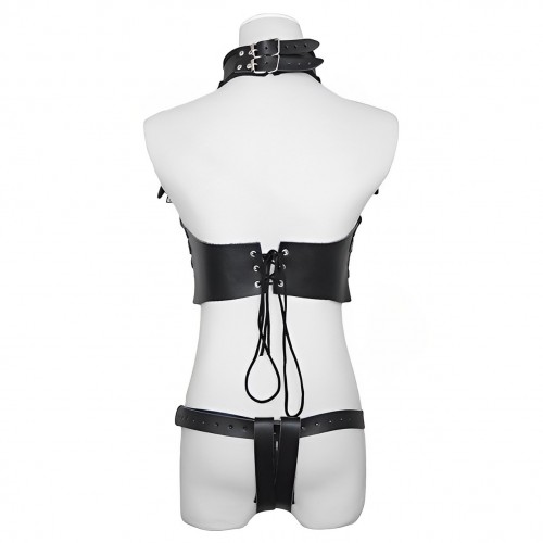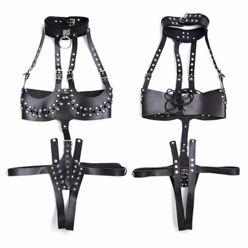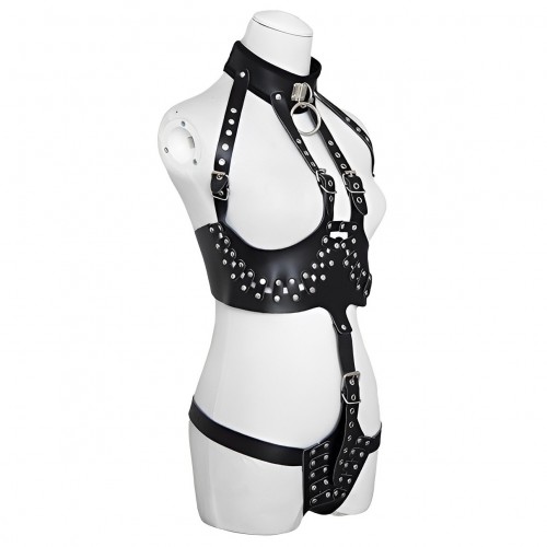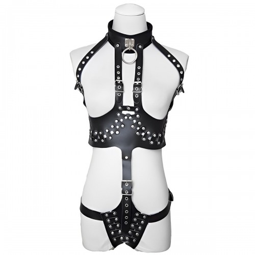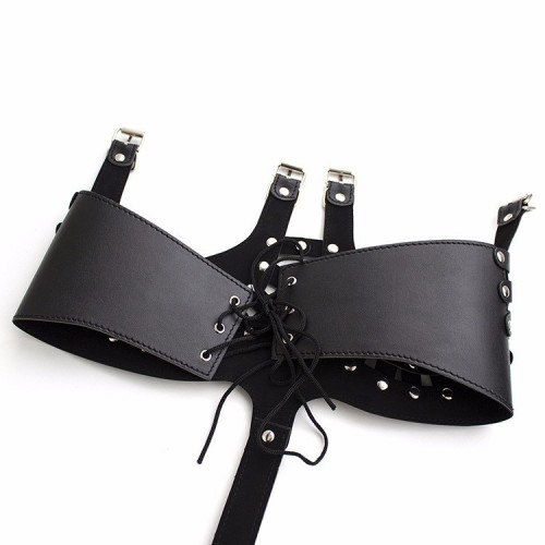 Кожаная сбруя по форме напоминает удобное сексуальное боди.