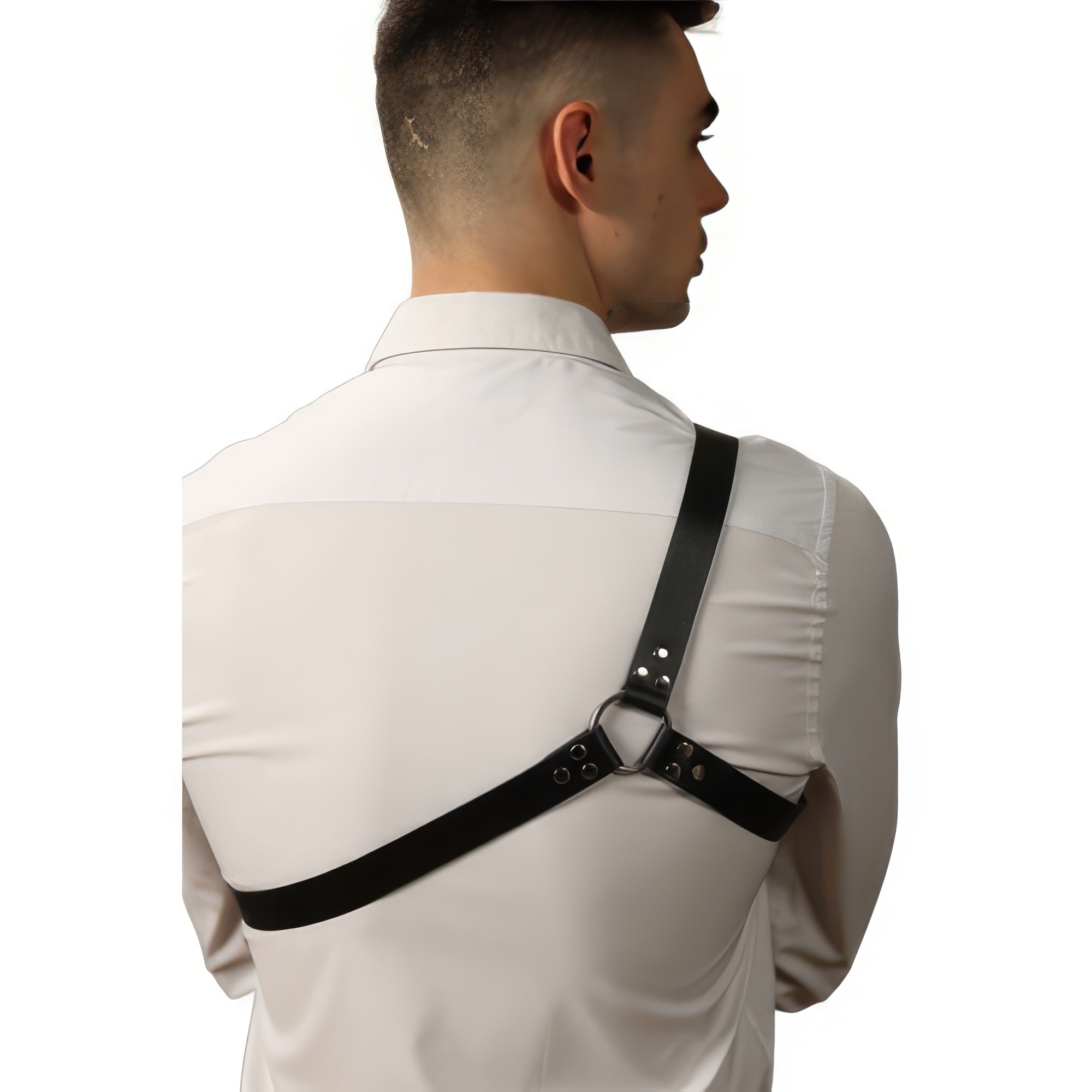 Брутальная БДСМ сбруя для мужчин через одно плечо с заклепками, выполненная полностью из натуральной кожи, поможет разнообразить Ваш совместный вечер и воплотить все тайные желания в реальность!