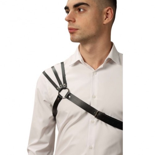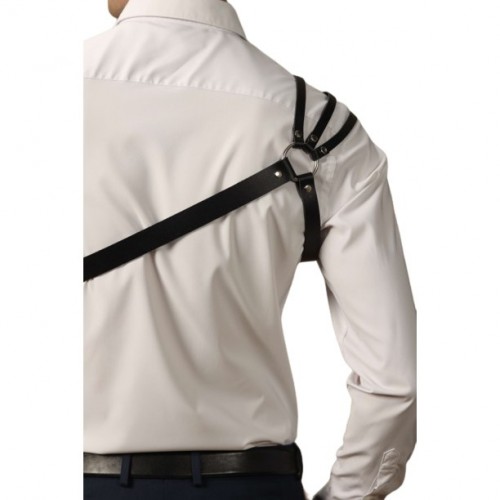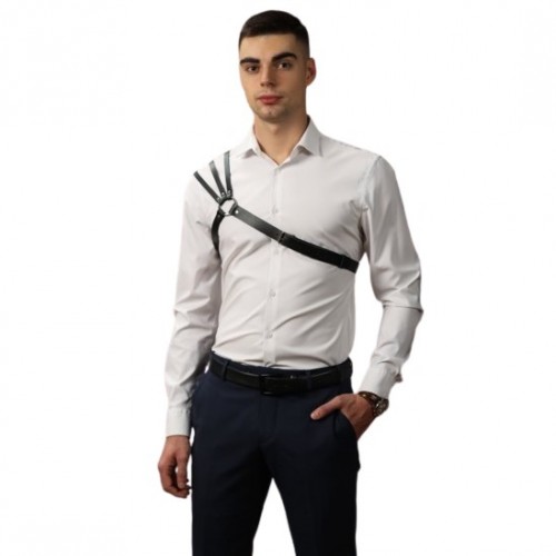 Необычная мужская БДСМ сбруя через одно плечо с ремешками, выполненная полностью из натуральной кожи, поможет разнообразить Ваш совместный вечер и воплотить все тайные желания в реальность!
