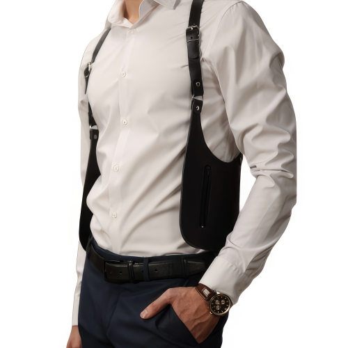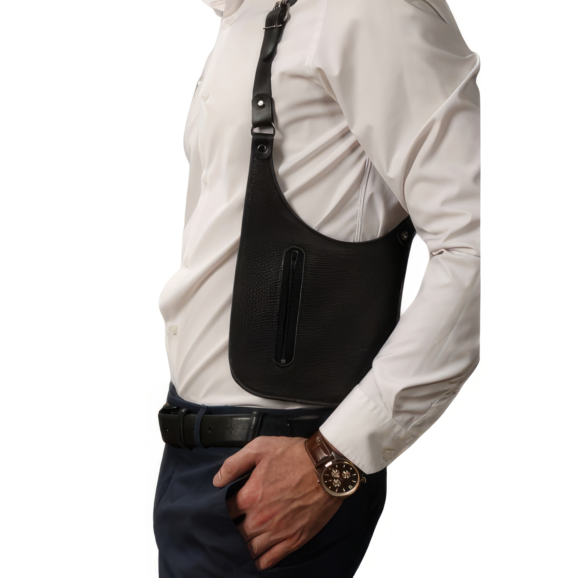Главной особенностью аксессуара являются кожаные детали-карманы по бокам, которые застегиваются на молнию. Это является не только декоративным элементом, но так же, в них можно разместить банковские карты, купюрницу или просто банкноты. Портупею можно комбинировать с разными стилями одежды и разными образами, она отлично подчеркнет индивидуальность.