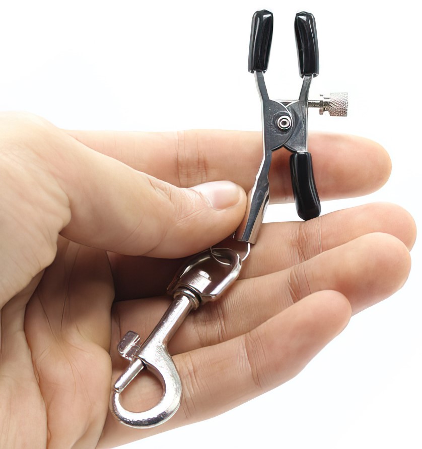 Карабины, которые прикреплены к каждому зажиму, позволят расширить круг воплощаемых фантазий - Вы сможете прикрепить к ним дополнительные аксессуары, утяжелители, соединить зажимы веревкой, цепью... или просто тянуть за них, чтобы еще больше обострить ощущения!