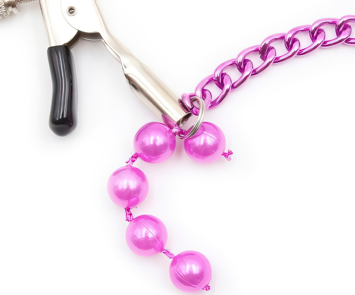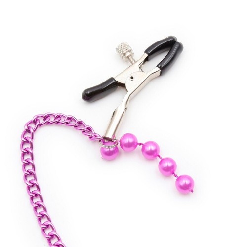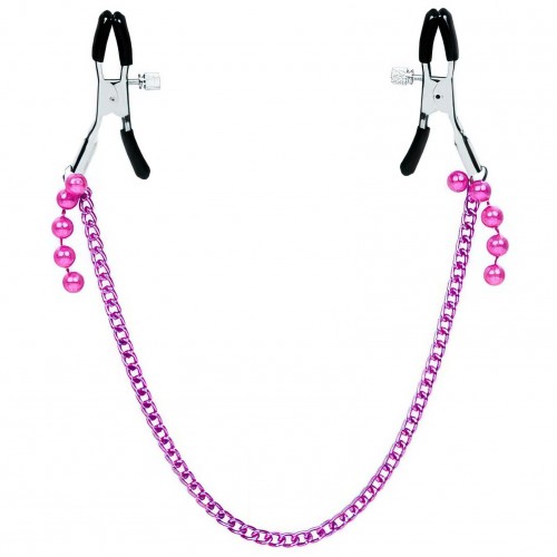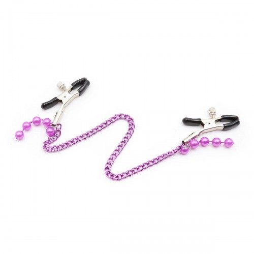 Зажимы для сосков с фиолетовой цепью и бусинами
