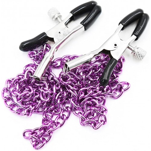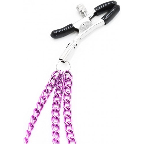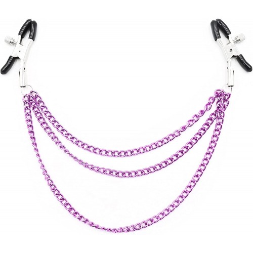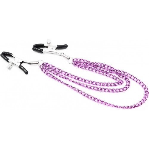 Зажимы для сосков с тройной фиолетовой цепочкой