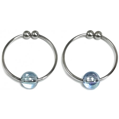 Клипсы-колечки для сосков с голубыми бусинами Silver Nipple Rings
