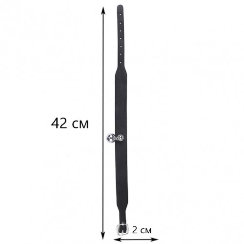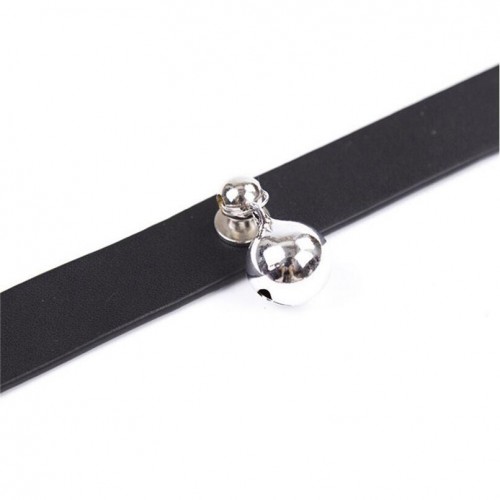 Оригинальный черный ошейник, декорированный колоколом. Крепление удобно в использовании и легко регулируется под нужный диаметр.
