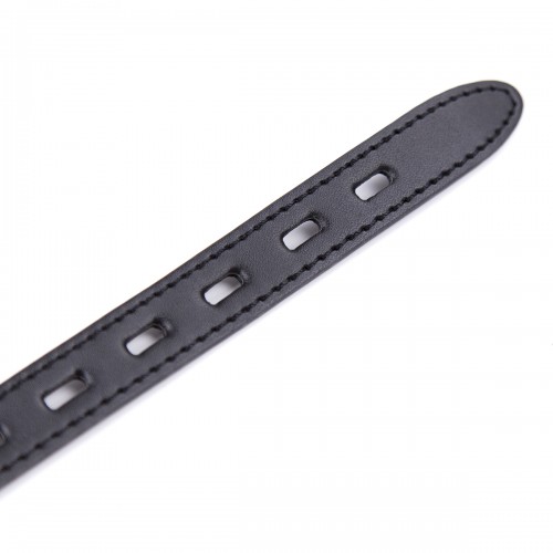 Кляп невозможно выплюнуть, он надежно фиксируется при помощи ремешка, который регулируется с помощью пряжки и фиксируется замочком - так Ваш партнер никогда не сможет снять кляп без разрешения.