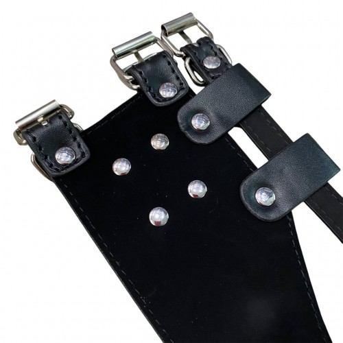 Ошейник выполнен из искусственной кожи, он комфортно ощущается на шее, не врезаясь и не травмируя ее. Фиксируется ошейник с помощью замочка с ключиком, так, что Ваш раб не сможет преждевременно высвободиться.