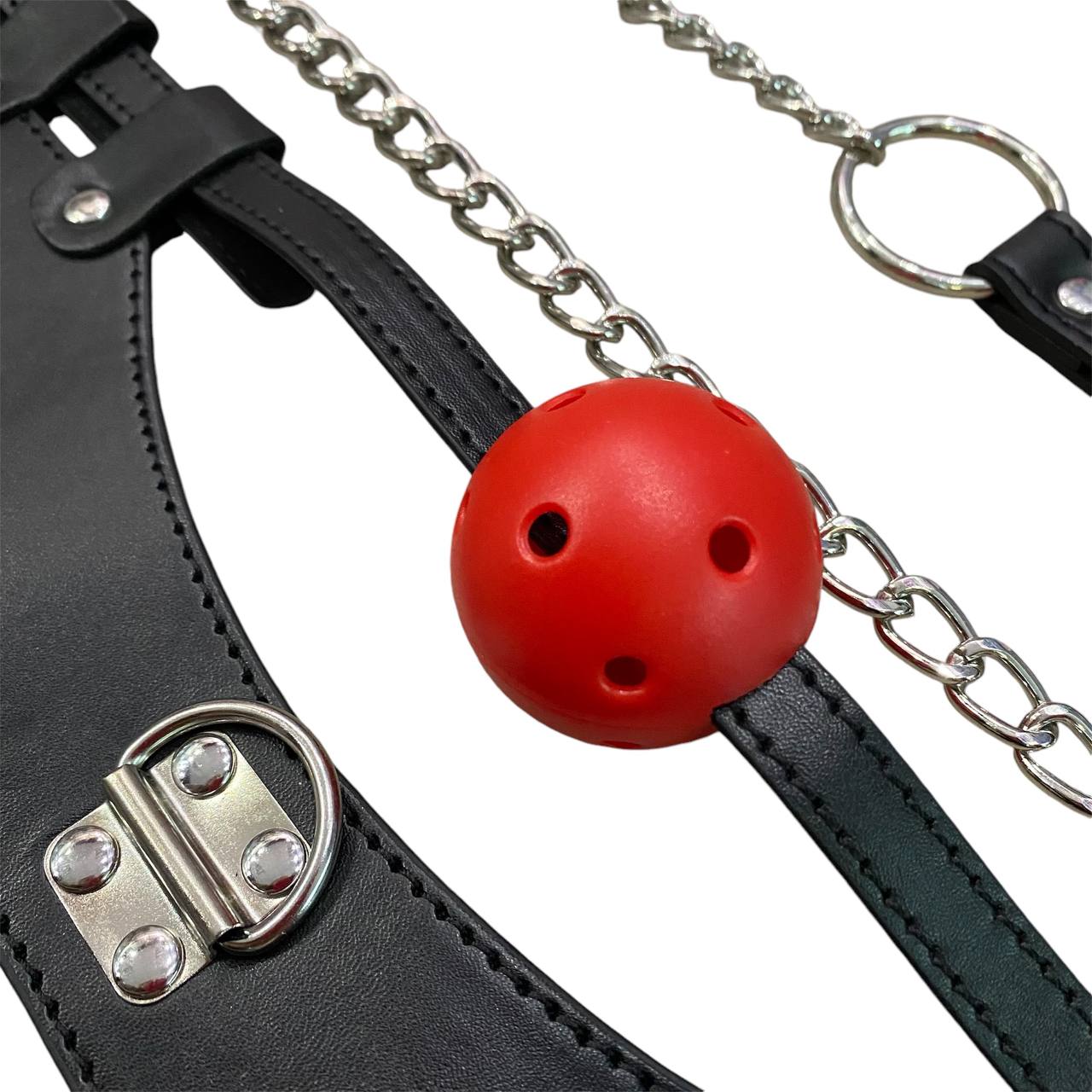 Кляп-шар имеет универсальный размер, который удобно регулируется при помощи пряжки, а специальные дырочки в шаре облегчают дыхание и обеспечивают полный комфорт.