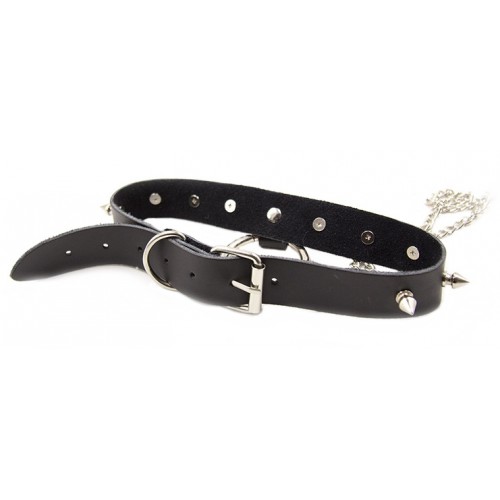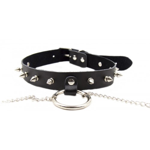 Дерзкий черный ошейник с шипами прекрасно украсит любую шею, ремешок надежно фиксирует аксессуар, а также позволит отрегулировать размер.