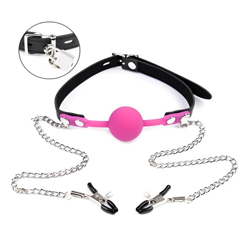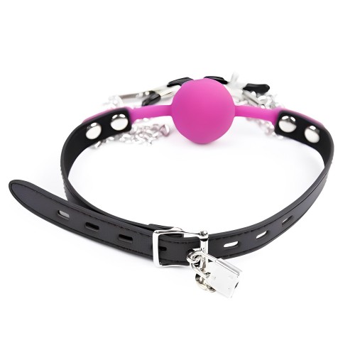 Кляп невозможно выплюнуть, он надежно фиксируется при помощи ремешка, который регулируется с помощью пряжки и фиксируется замочком.