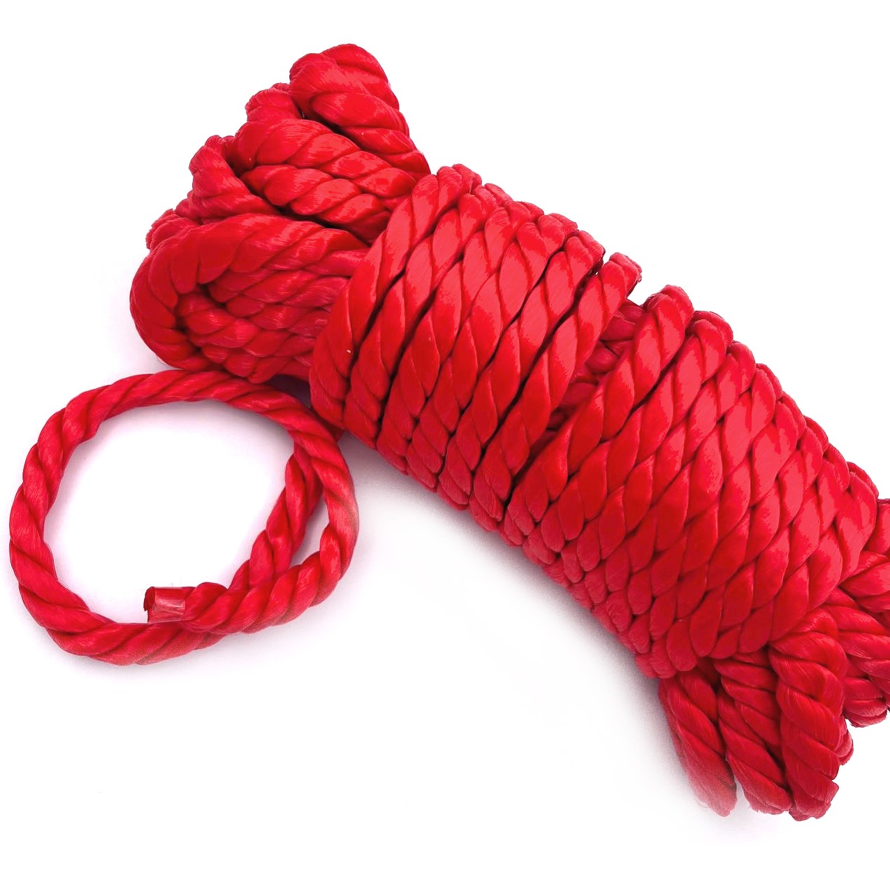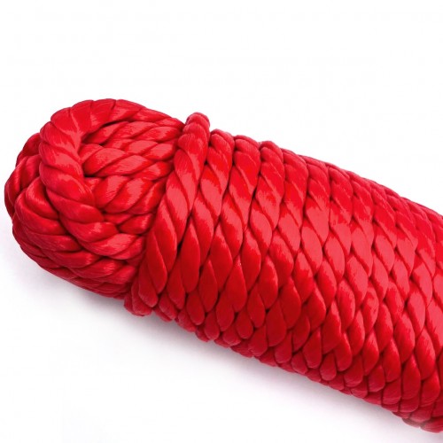 Безопасная и качественная веревка для связывания и бондажа из нейлона красного цвета.