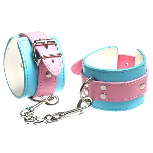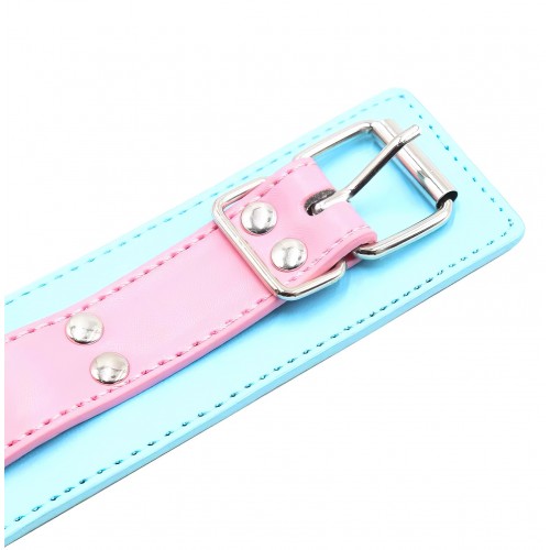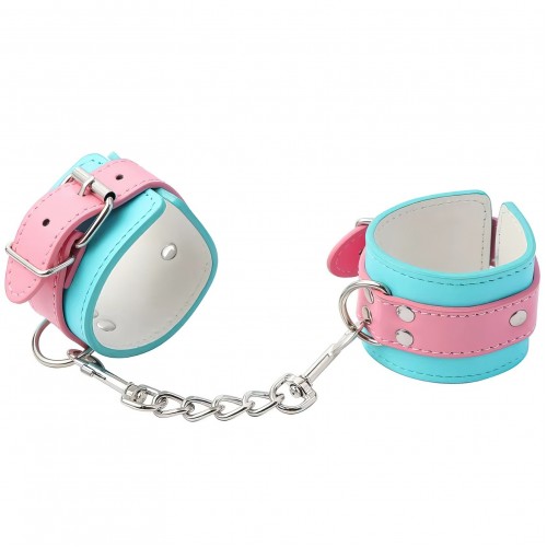 Металлическая фурнитура обеспечивает качественную фиксацию. Наручники соединяются между собой цепью с карабинами, благодаря чему обеспечивается достаточно жесткая сцепка.