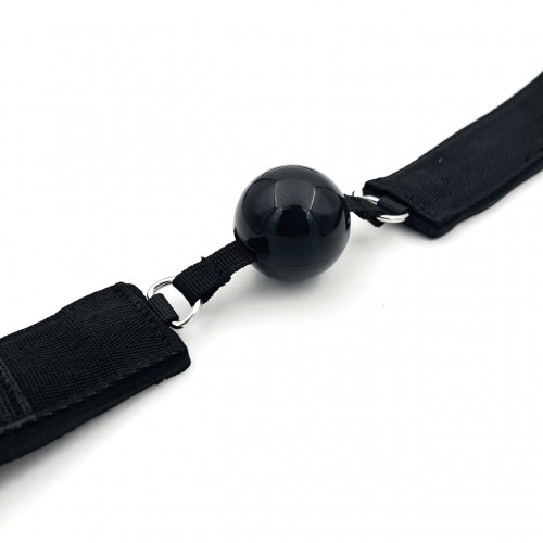 Размеры: общая длина 60 см, максимальный обхват наручников 40 см, максимальный обхват кляпа 63 см, диаметр шара 4 см