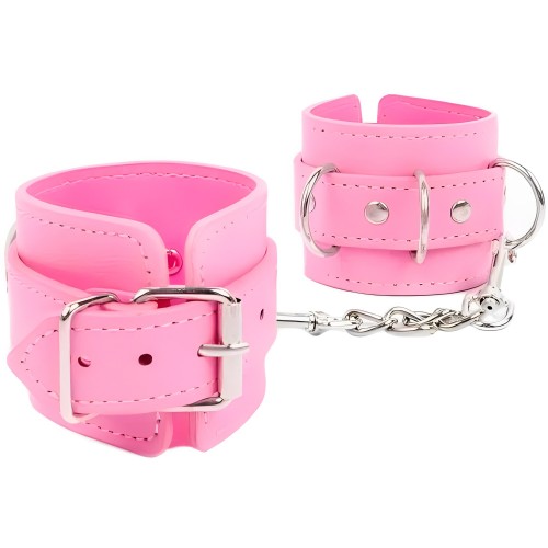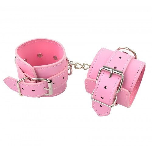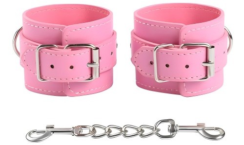 Металлическая фурнитура обеспечивает качественную фиксацию. Наручники соединяются между собой цепью с карабинами, благодаря чему обеспечивается достаточно жесткая сцепка.