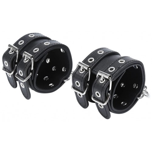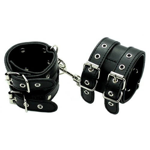 Металлическая фурнитура обеспечивает качественную фиксацию. Наручники соединяются между собой цепью с карабинами, благодаря чему обеспечивается достаточно жесткая сцепка.