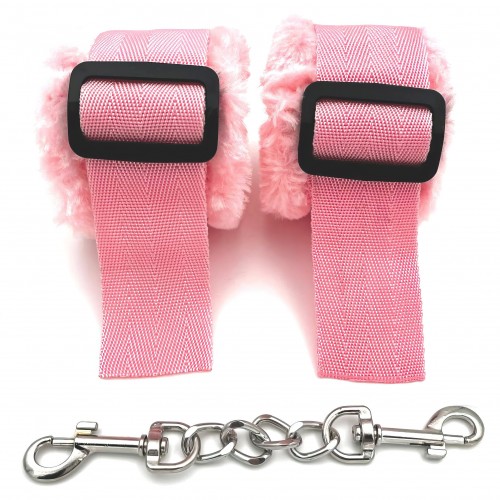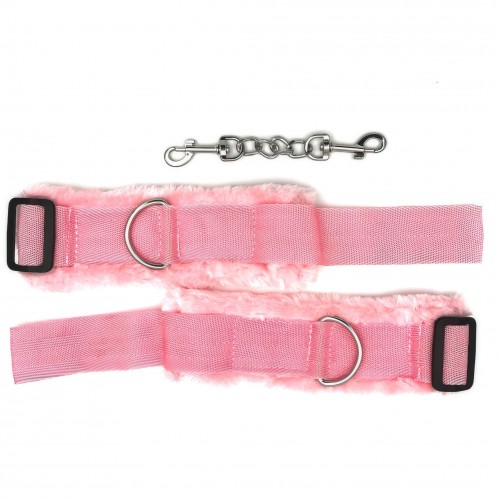 Текстильные наручники с мехом розовые