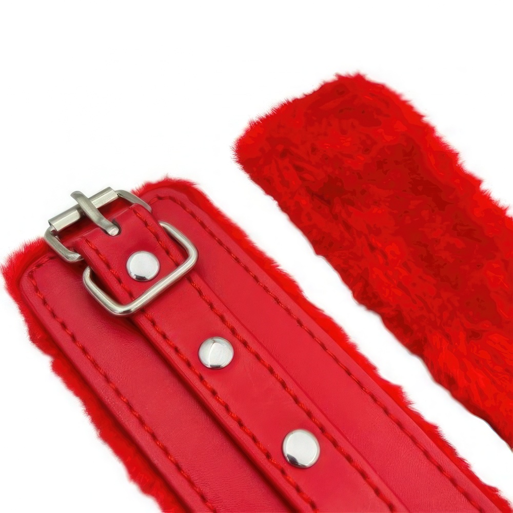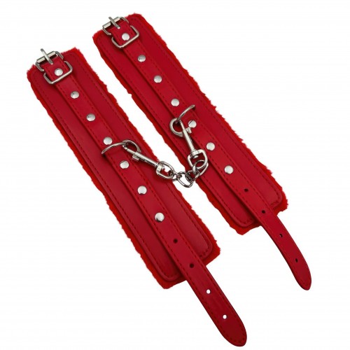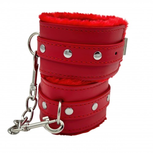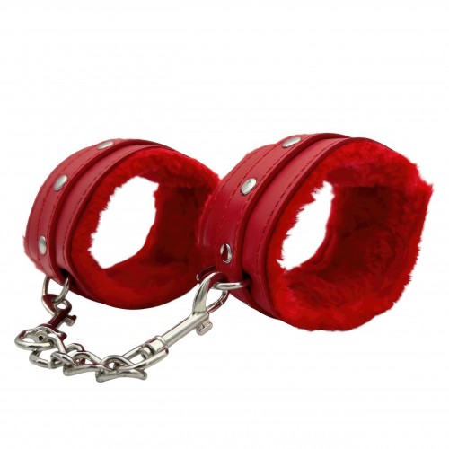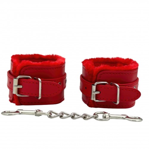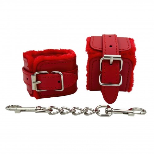 Металлическая фурнитура обеспечивает качественную фиксацию. Наручники соединяются между собой цепью с карабинами, благодаря чему обеспечивается достаточно жесткая сцепка.