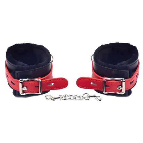 Размер браслетов широко регулируется при помощи пряжки, что позволяет подобрать комфортный обхват как на женскую, так и на мужскую лодыжку. А отделка из искусственного меха сделает оковы комфортными для использования!