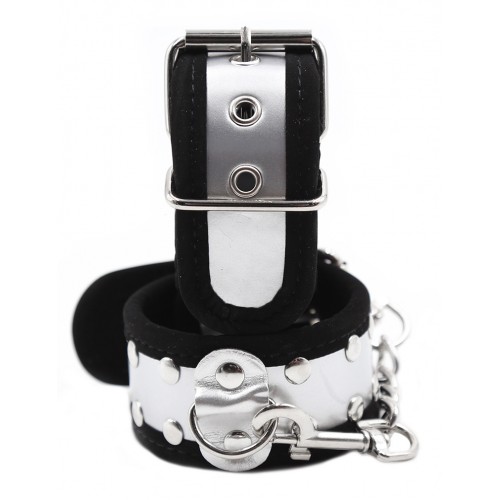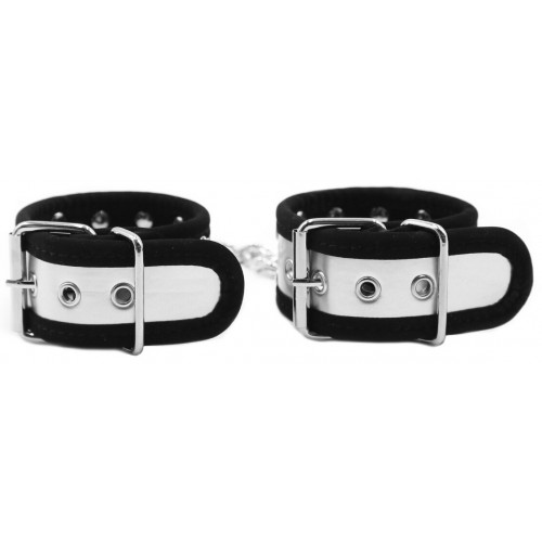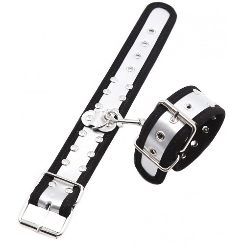Металлическая фурнитура обеспечивает качественную фиксацию. Наручники соединяются между собой цепью с карабинами, благодаря чему обеспечивается достаточно жесткая сцепка.