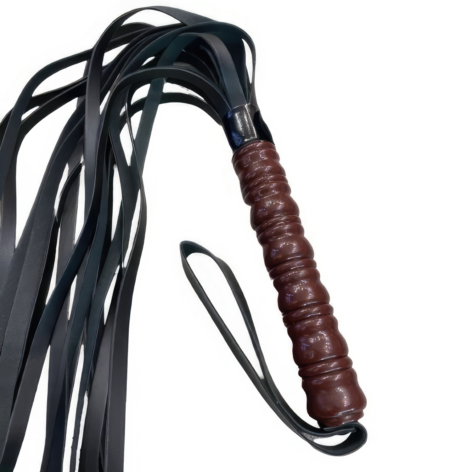 Плеть имеет твердую руко­ять, сделанную из пластика, кото­рая удобно помеща­ется в руке и не выскаль­зы­вает даже когда действия ста­но­вятся более интен­сив­ными. Для наи­большего комфорта плеть оснащена пет­лей на запястье.