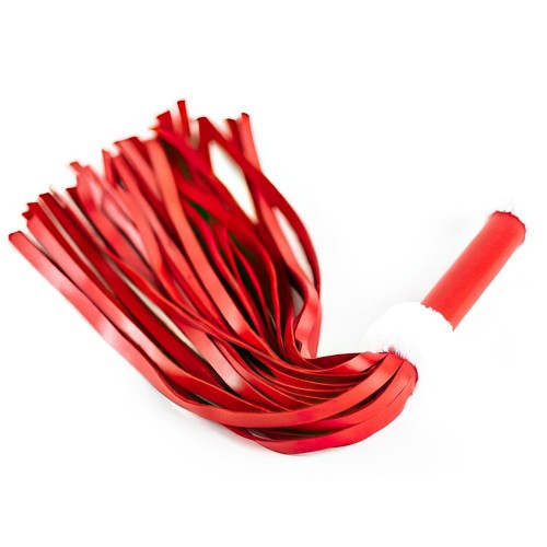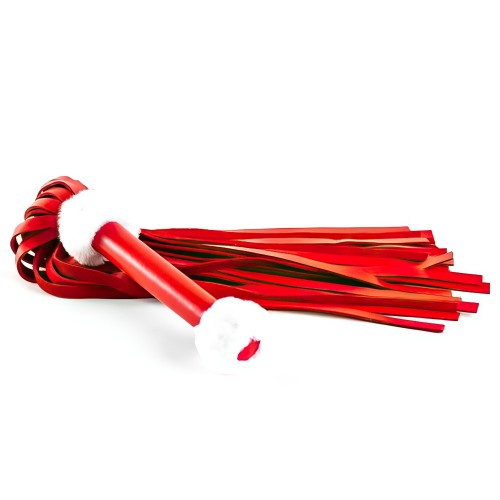 Плеть из натуральной кожи красного цвета с меховым декором 50 см
